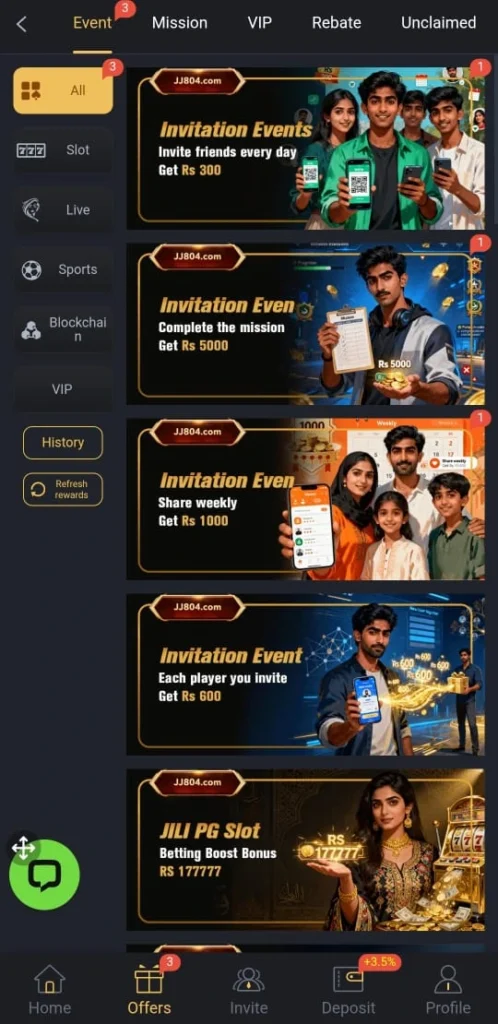 JJ804 game offers a referral system where you earn rewards by inviting friends. When your friend registers and plays you receive a bonus. This bonus builds your balance and helps you play more games without extra deposit. The referral program is made simple so every user can benefit from it.