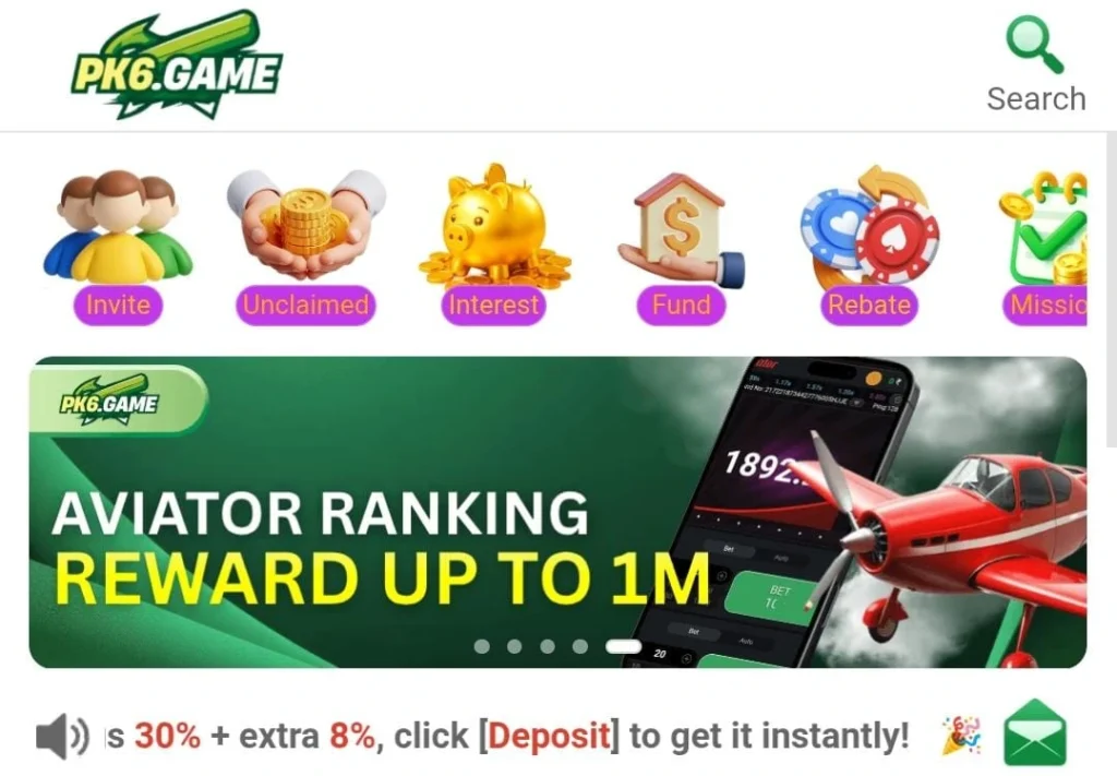 Pk6 game is an online casino based platform that allows users to play games and win real rewards. The app can be installed on Android devices and does not require complicated steps. Players can deposit balance through local wallet systems such as JazzCash and Easypaisa. After depositing they can select any game and start playing. If the player wins the game then the reward is added instantly to the wallet inside the app. The earned balance can then be withdrawn to JazzCash Easypaisa or bank account. This simple cycle makes pk6 popular among new and experienced players.
