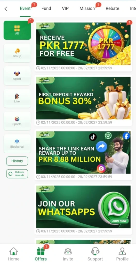 Pk6 provides a referral link system. You can invite new players to join. When your invited players deposit and play then you receive commission. This method allows players to earn without playing. Many users use referral income as an extra earning source.