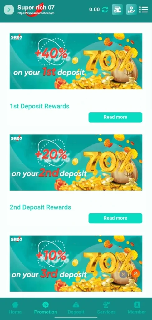Super Rich07 offers an easy way to enjoy casino style games while earning money. The platform provides fast deposits and withdrawals and a simple interface. With multiple game options and referral opportunities it is suitable for beginners and experienced players. However players should always play responsibly and with planning.
