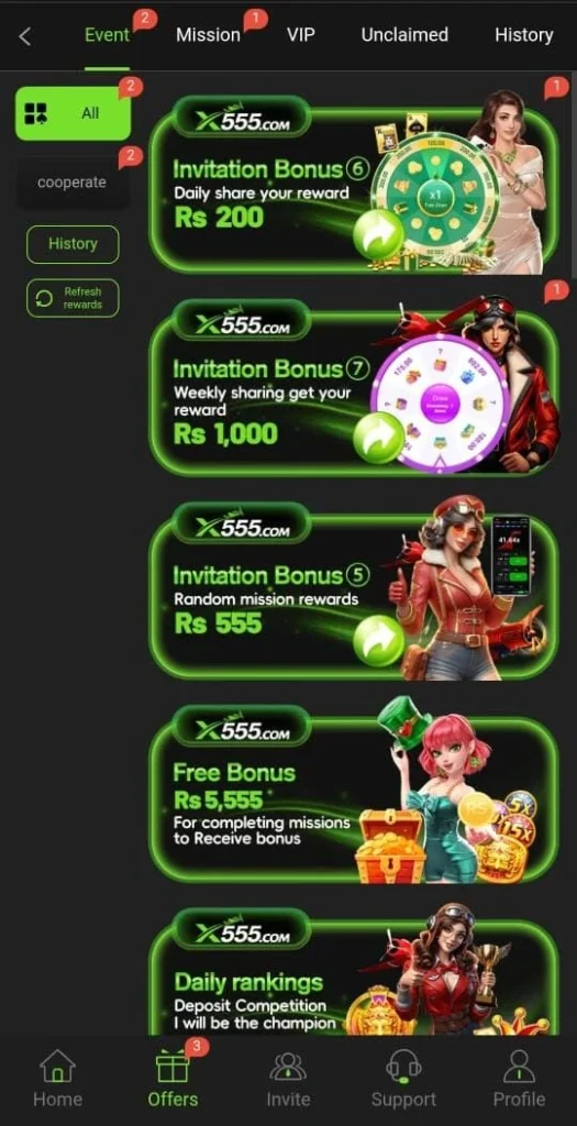 The X555 referral program allows you to earn passive income. You get a unique referral link to share with friends and family. Every time your referred player registers and starts playing, you earn a commission. The more active your referrals are, the more income you make.